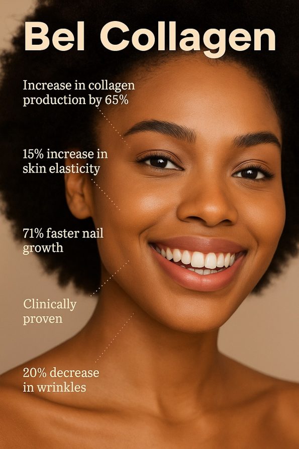 With consistent use, Bel Collagen helps smooth fine lines, brighten dull skin, and give your hair and nails the strength they deserve. The result? A youthful, vibrant look that gets noticed and the confidence that comes with it.
